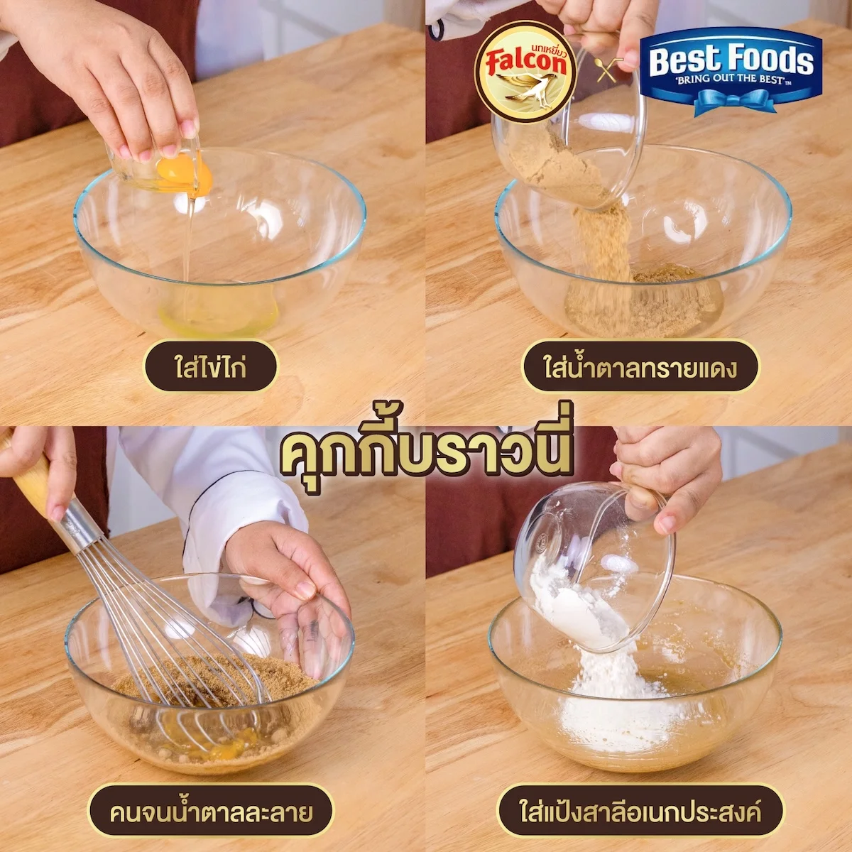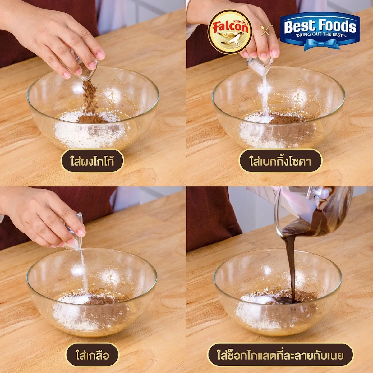 จากนั้นใส่ส่วนผสมที่เหลือลงไปตะลอมโดยไม้พายให้เข้ากัน