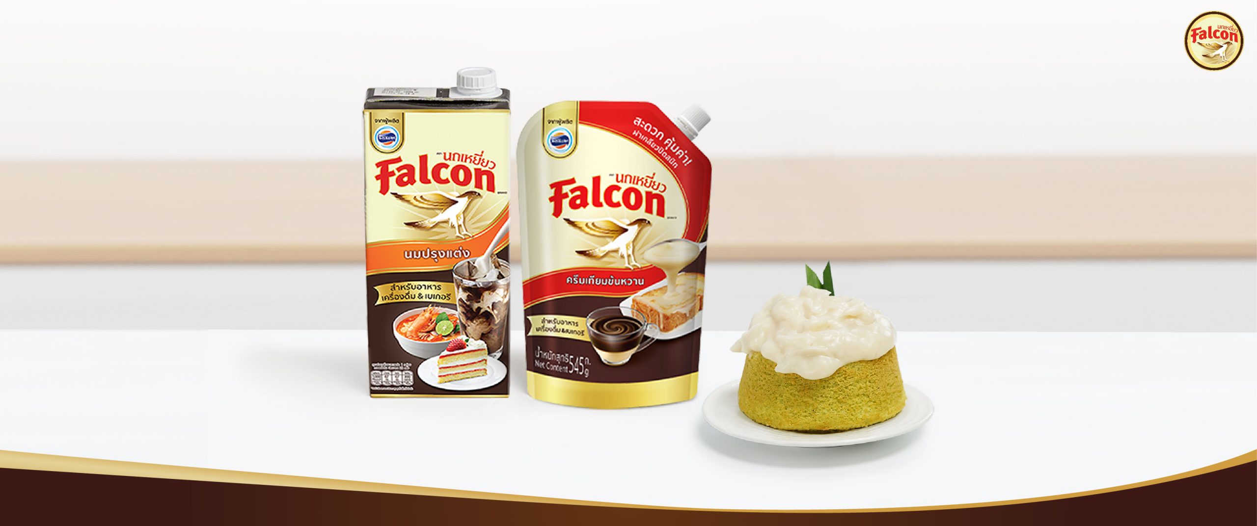 2. ผสมไข่แดงกับน้ำตาลทรายให้เข้ากัน ใส่น้ำมันพืชลงไป ตามด้วย นมข้นจืด นกเหยี่ยว ฟอลคอน จากนั้นคนผสมให้เข้ากัน และใส่แป้งที่ร่อนไว้ลงไป ผสมให้เข้ากันอีกครั้งและพักเอาไว้
