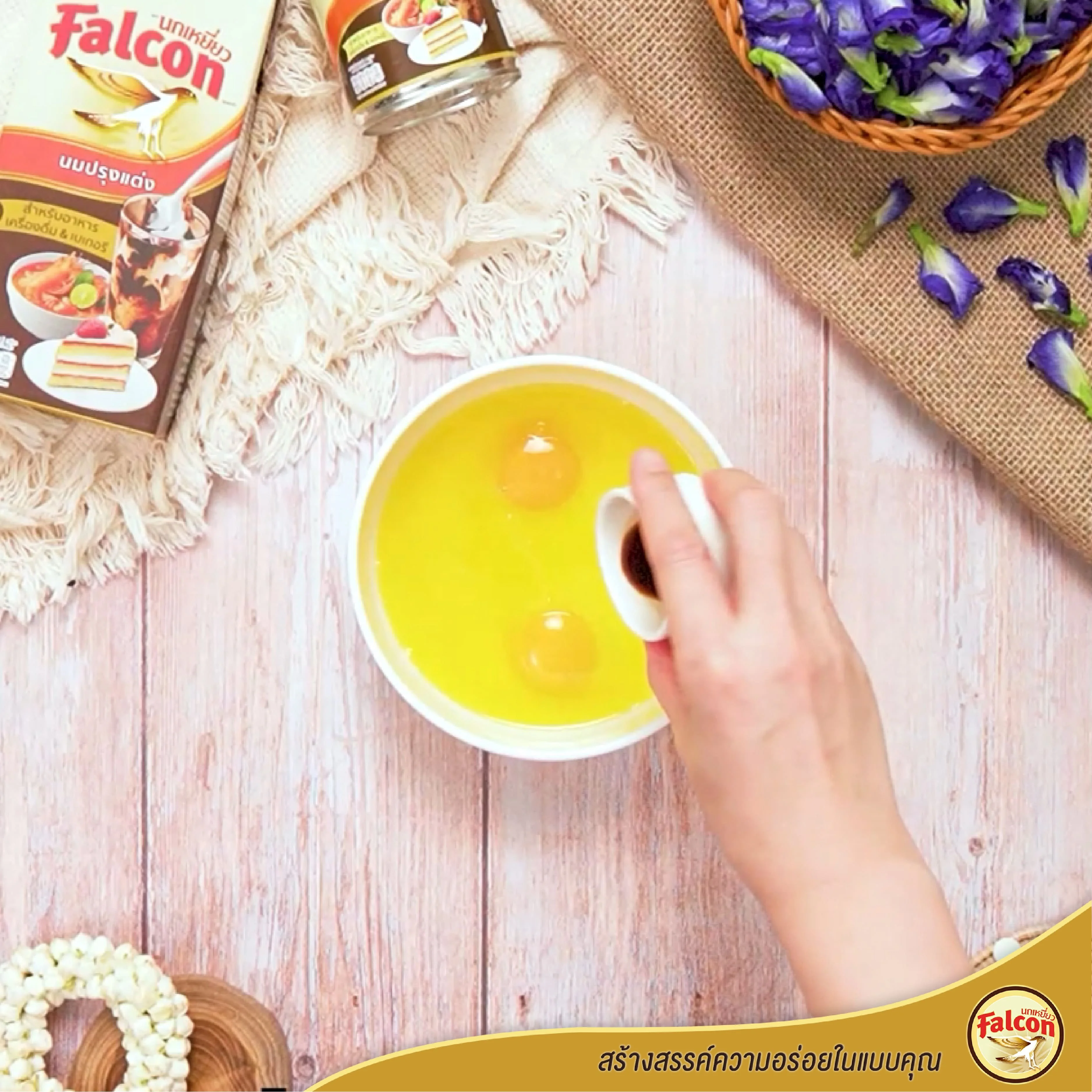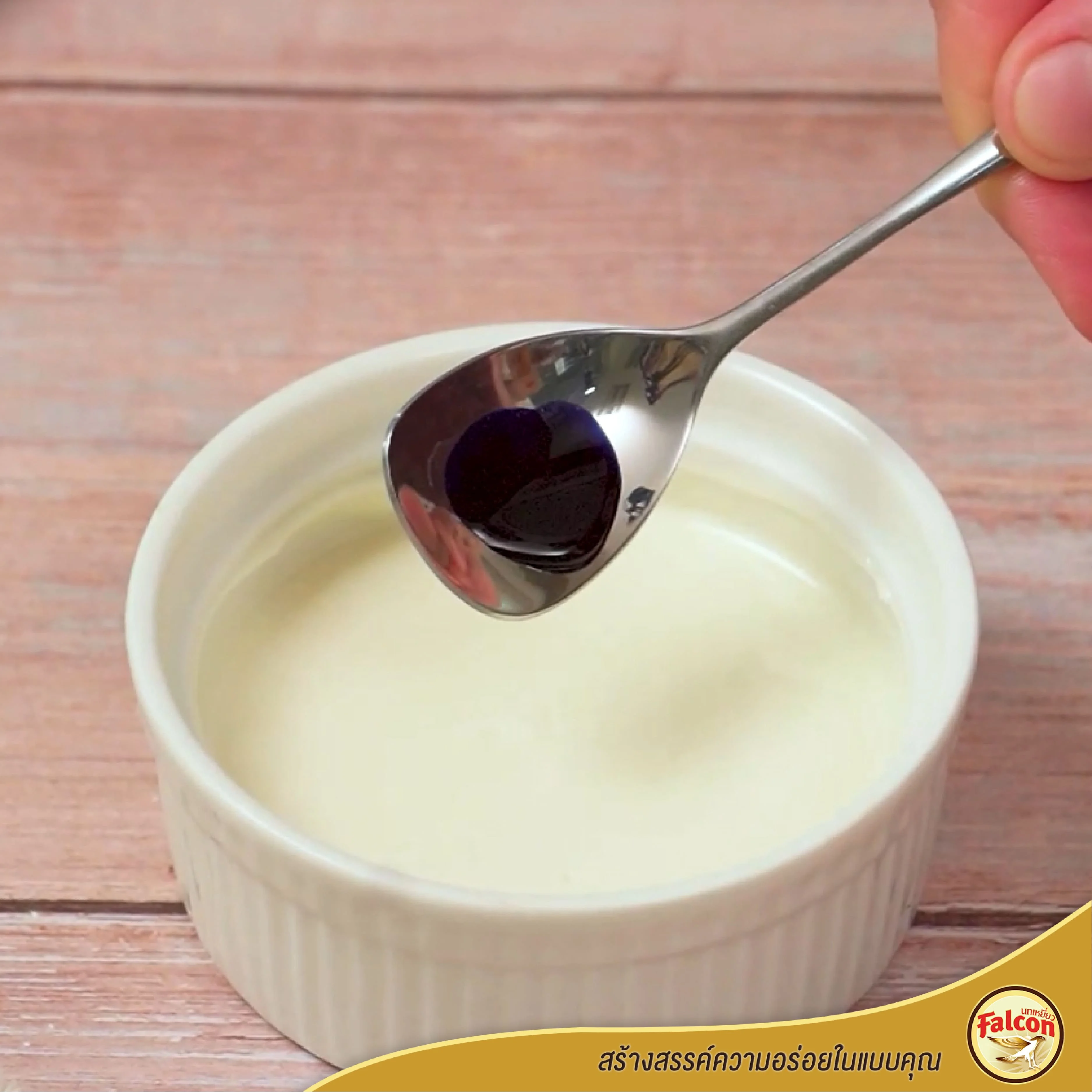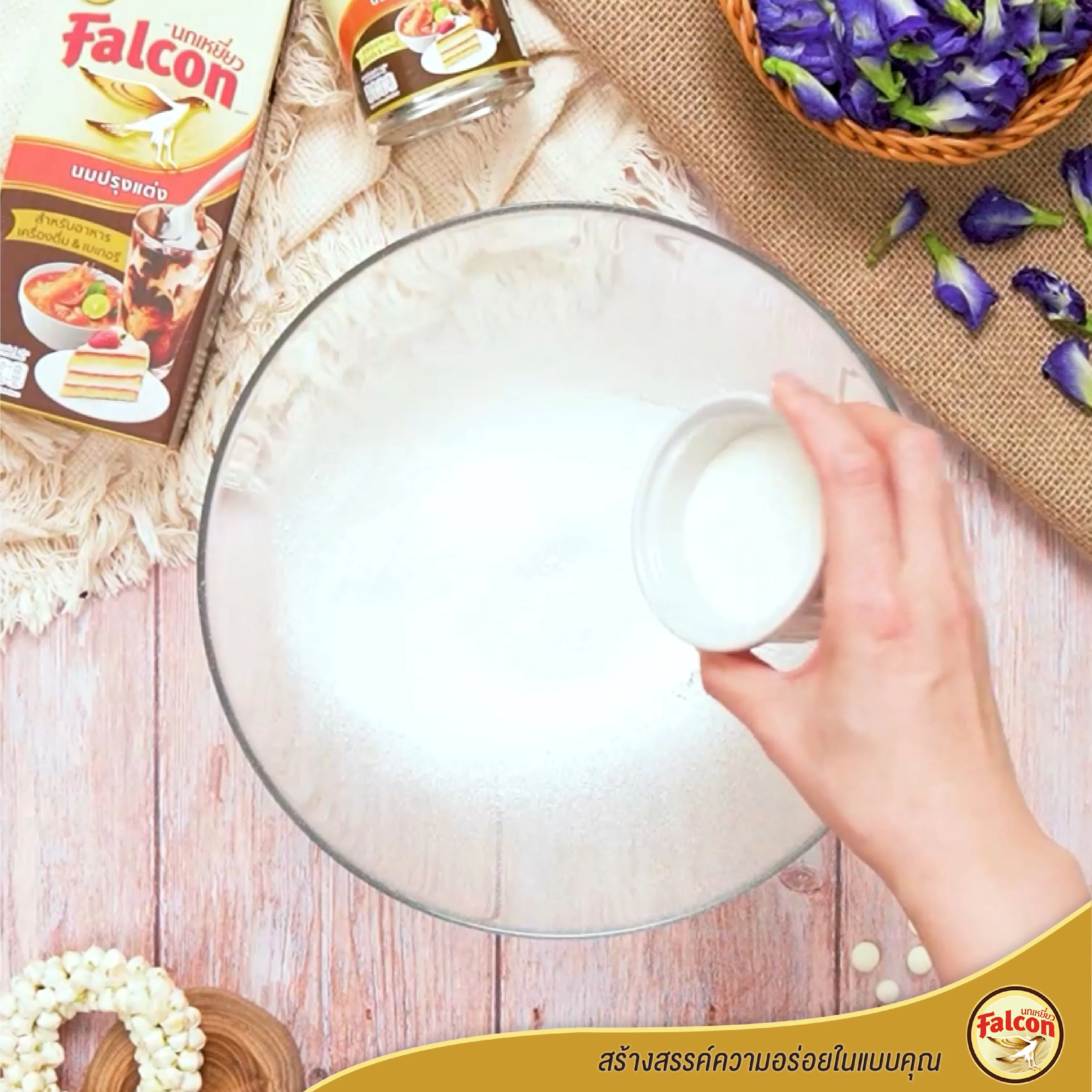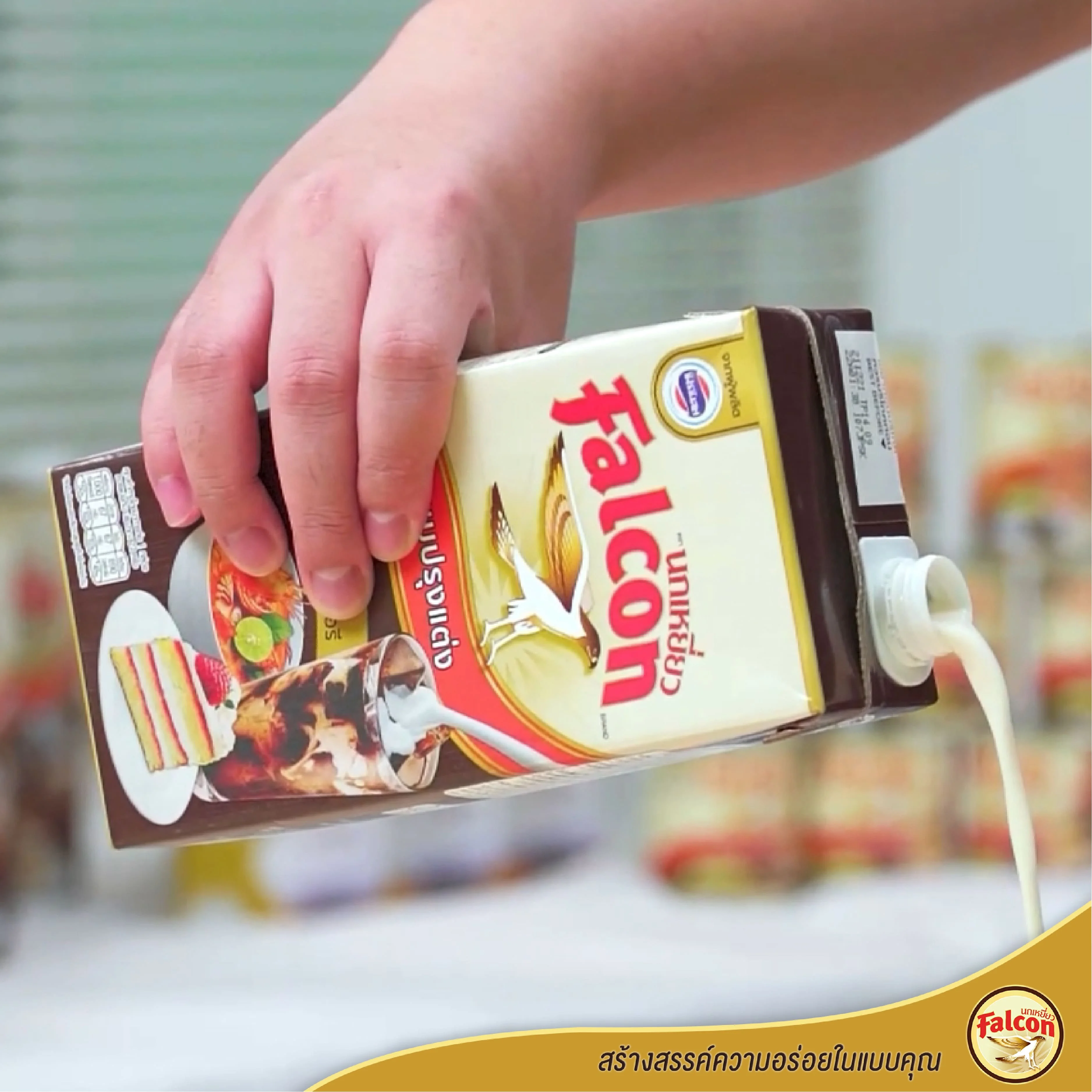 4. เท นมข้นจืด ตรานกเหยี่ยว ฟอลคอน ลงไป