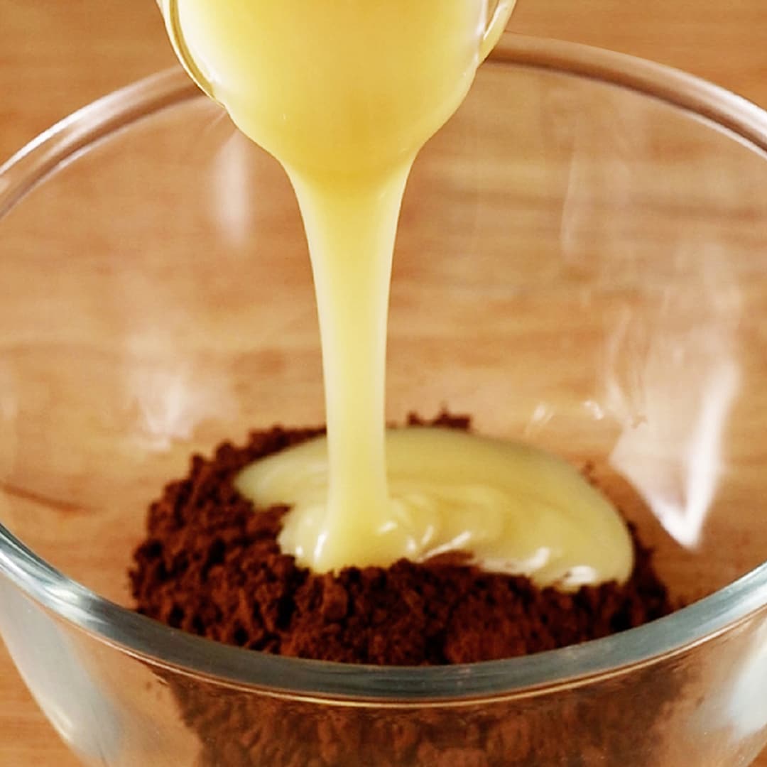 5. จากนั้นเติมข้นหวาน ตรานกเหยี่ยว ฟอลคอน ลงไป